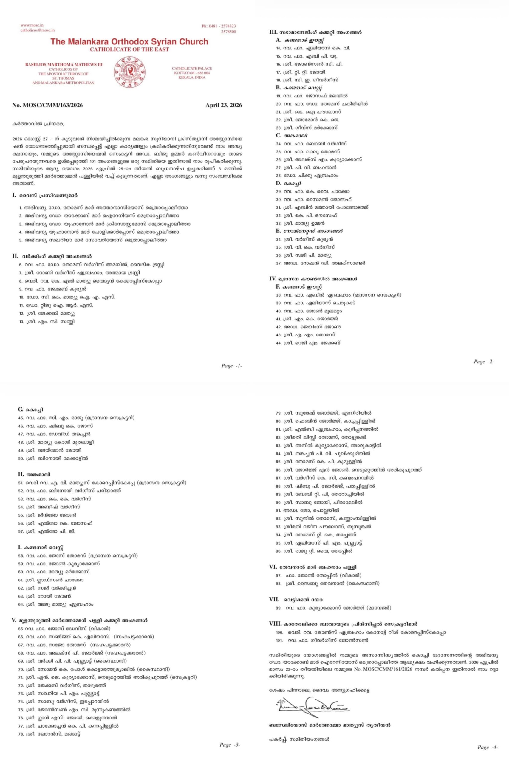 മലങ്കര അസോസിയേഷൻ 101 അംഗ കമ്മിറ്റി രൂപീകരിച്ചു.ആദ്യ യോഗം മുളന്തുരുത്തി പള്ളിയിൽ 29ന്